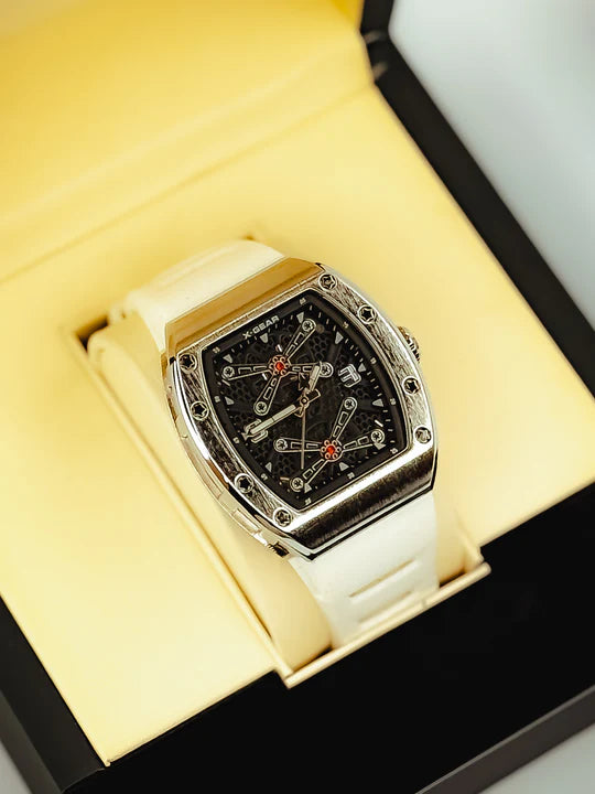 🔥 Featuring a bold skeleton dial, precision detailing, and signature white celecon PVS straps – built to stand out in every scene.